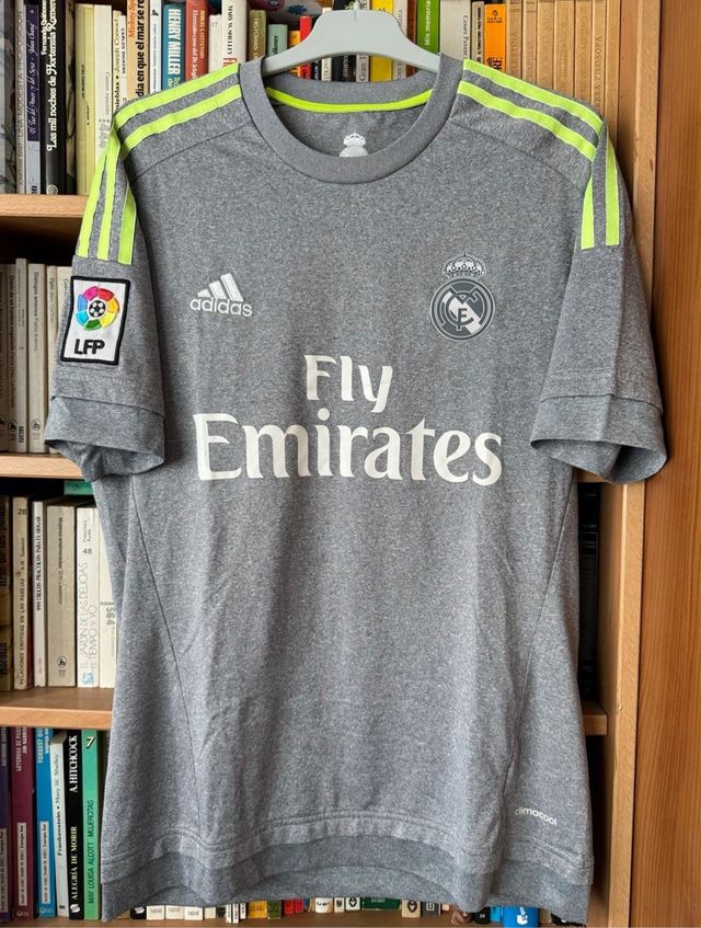 Detalles del productoTalla S. Totalmente original/oficial y en muy buen estado, con uso pero sin grandes desperfectos, tal y como se puede apreciar en las fotos. Camiseta gris de visitante utilizada en la temporada 2015/2016, marca Adidas y con publicidad de Fly Emirates. Toda una joya para coleccionistas y aficionados Del Real Madrid Club de Fútbol.