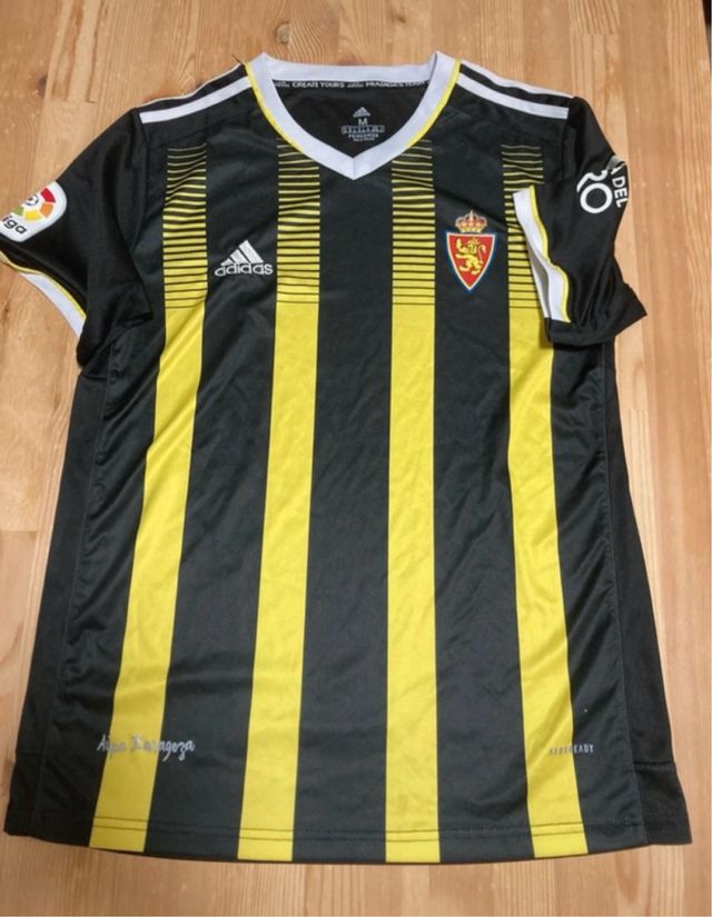 Detalles del productoCamiseta de fútbol del Real Zaragoza, de la temporada 2021-2022, Talla M. En muy buenas condiciones, tal como se ve (solo un hilo/fibra que sobresale y un punto muy pequeño sacado, en la parte superior e inferior respectivamente, que apenas se notan; salen en las fotos).
