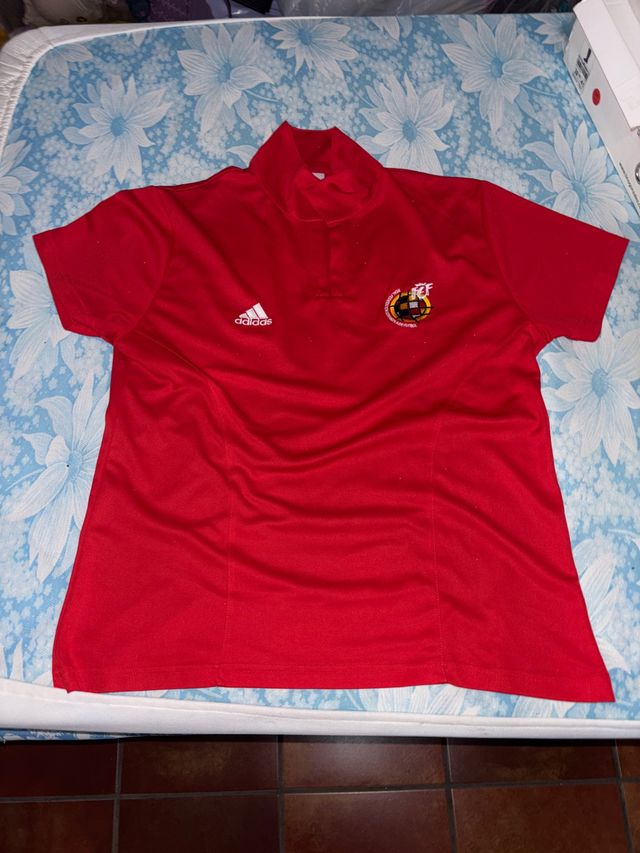 Detalles del productoCamiseta oficial de la Real Federación Española de Fútbol (RFEF) de color rojo, con el logo de Adidas.