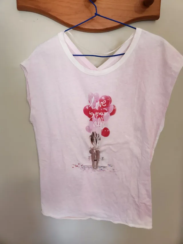 Camiseta rosa con globos y mensaje