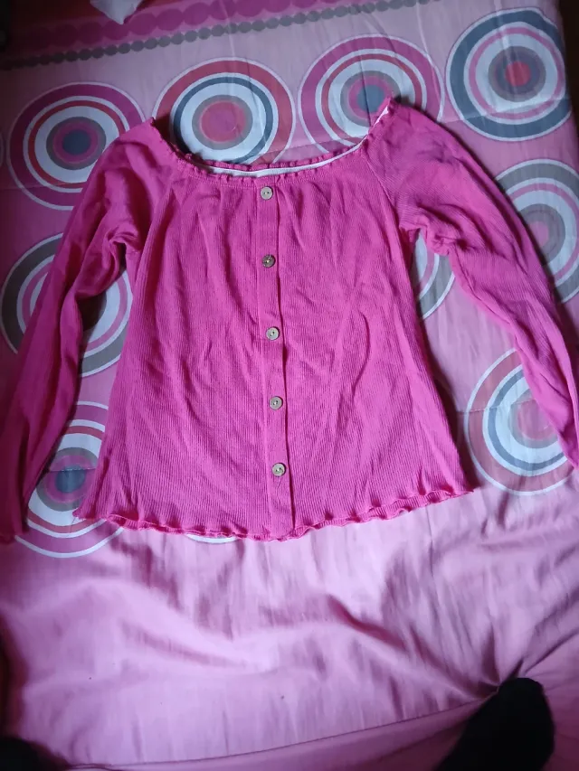 Camiseta rosa hombro descubierto botones
