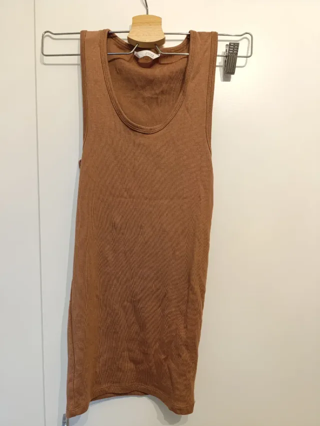 Camiseta básica de tirantes en color marrón. Es una prenda cómoda y versátil.