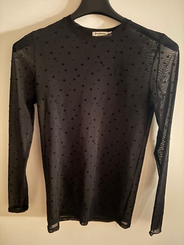 Camiseta Stradivarius Malla Estrellas Negra