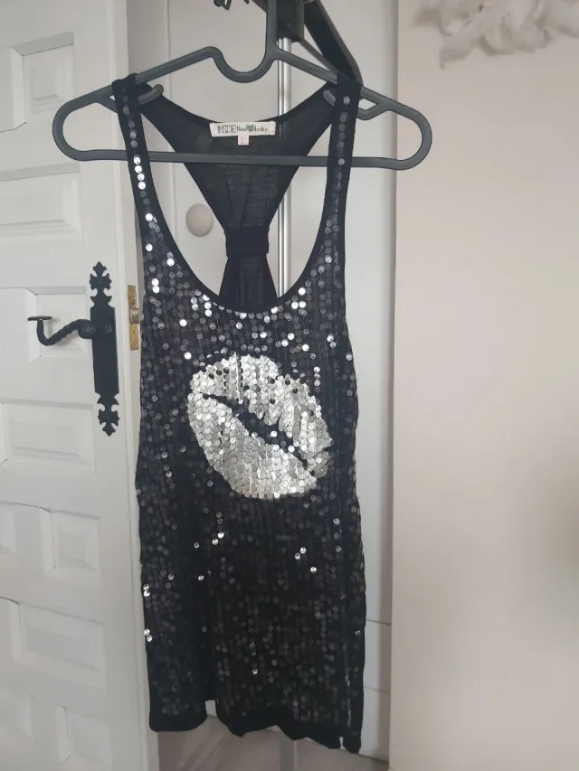 Camiseta talla L. Lentejuelas Negro/Plata - Beso