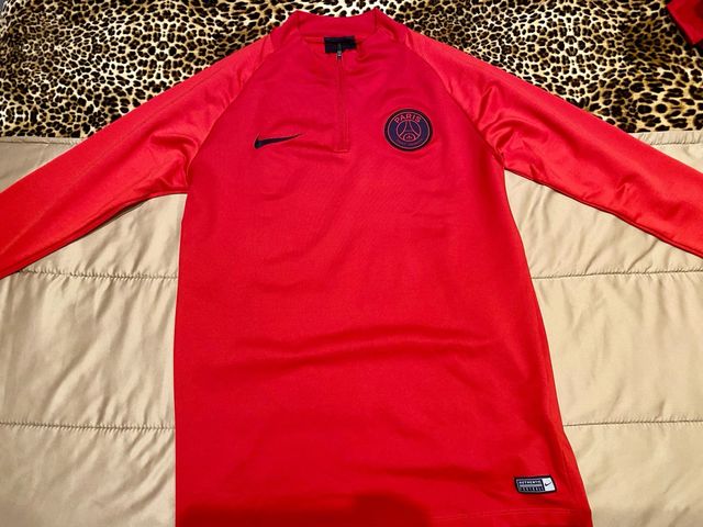 Detalles del productoCamiseta técnica de fútbol Nike en color rojo, talla M, con el escudo del Paris Saint-Germain.