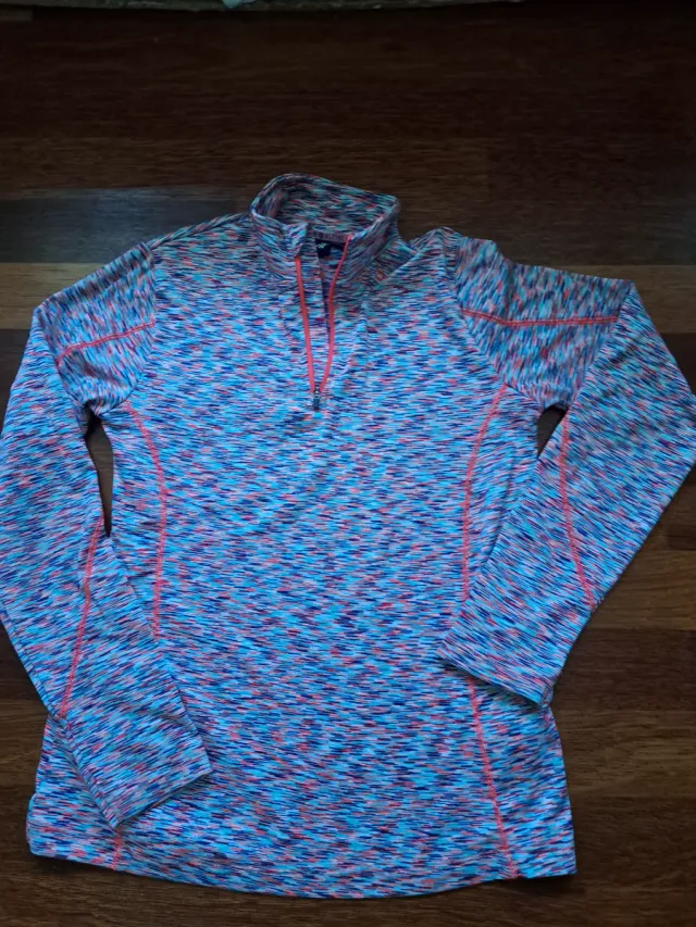 Detalles del productoCamiseta deportiva de manga larga con cuello alto y media cremallera.