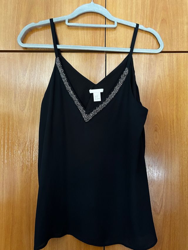 Elegante camiseta de tirantes con un detalle de pedrería en el escote.