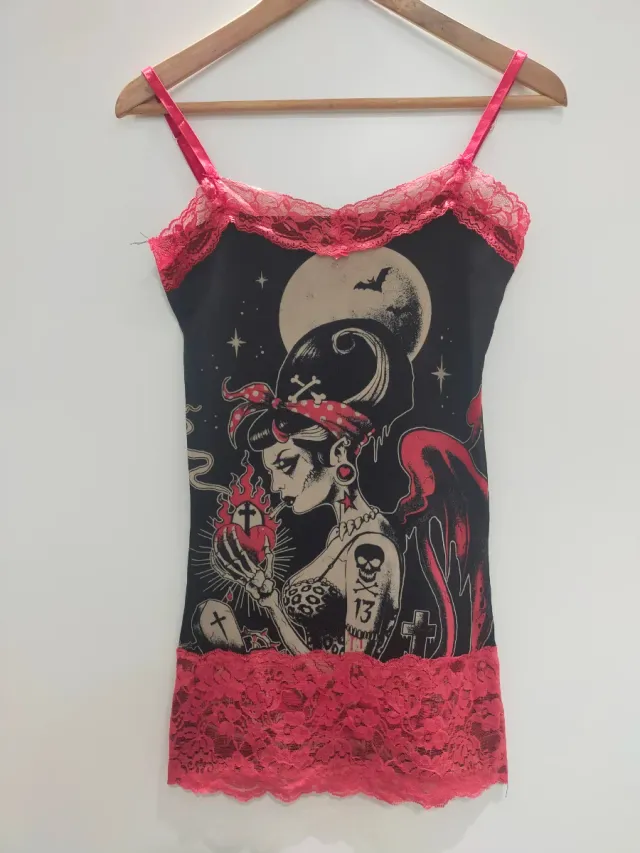 Camiseta Tirantes Too Fast Mujer Negra y roja.