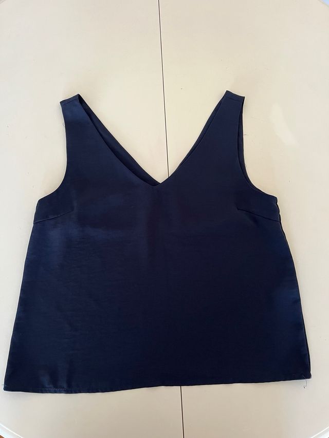 Camiseta de tirantes con escote en pico. - Diseño liso. - Tejido satinado.