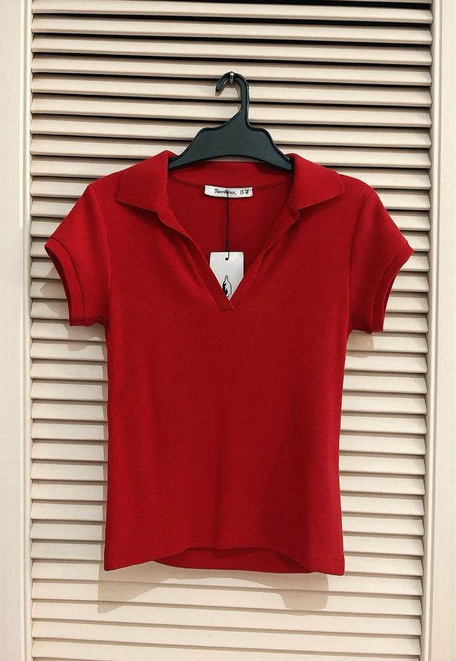 Camiseta Top polo canalé rojo Stradivarius talla S