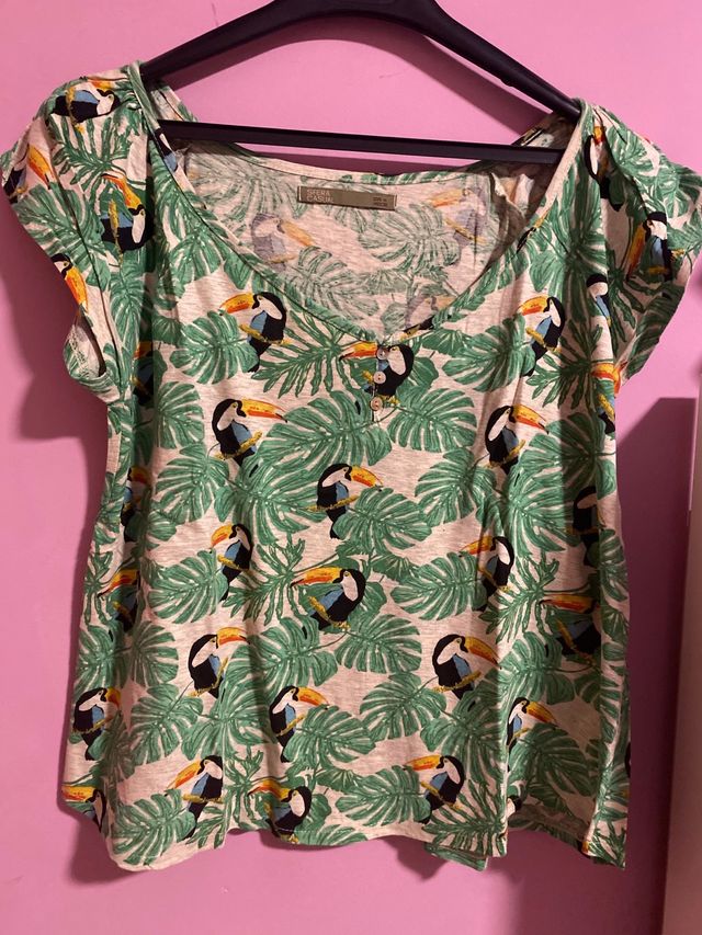Camiseta tucanes hojas verdes