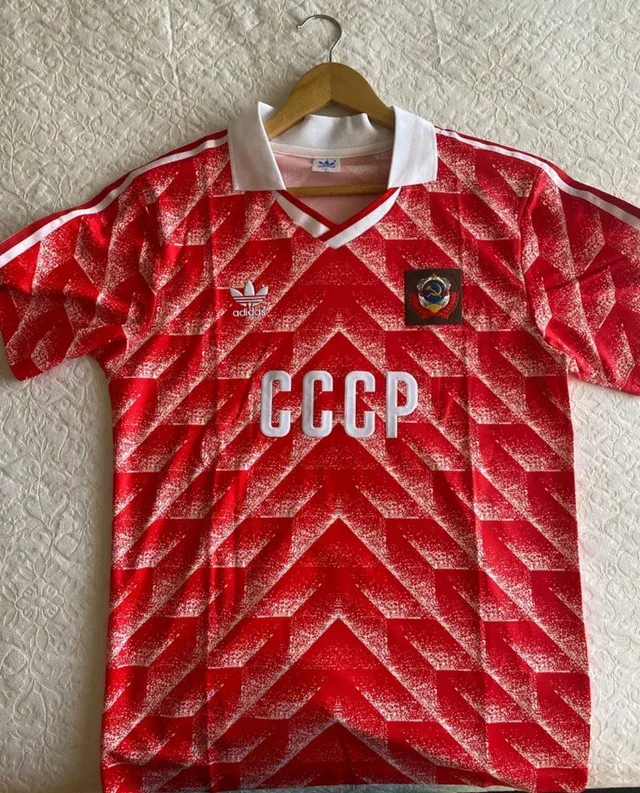 Detalles del productoCamiseta de fútbol de la Unión Soviética (URSS) de 1988, con el logo de Adidas y CCCP en el pecho.
