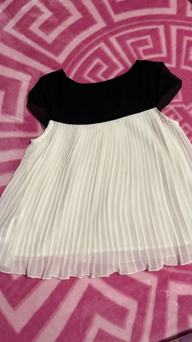 Camiseta Vestir Negra y Blanca Plisada DKNY