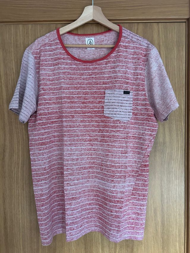 Camiseta Volcom Rayas Rojas y Blancas Talla M