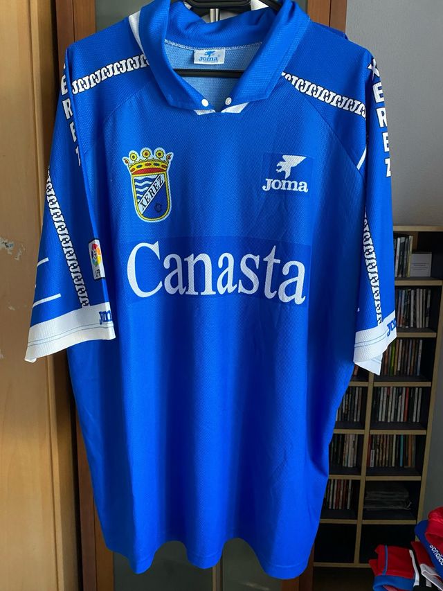 Camiseta de fútbol del Xerez CD. - Temporada 97/98. - Talla XL. - Marca Joma. - Color azul. - En perfecto estado, sin agujeros ni desgarros.