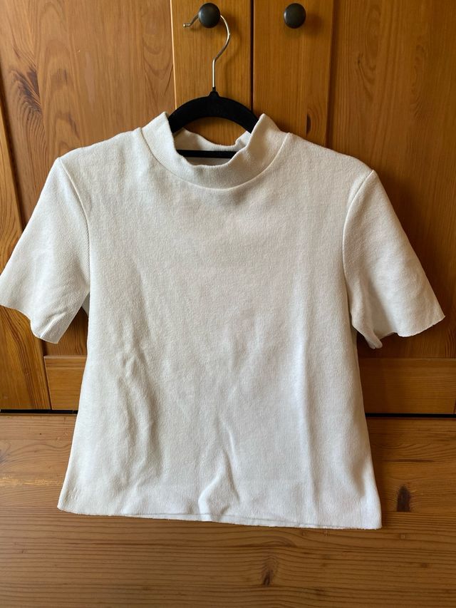 Camiseta Zara canalé cuello alto blanca