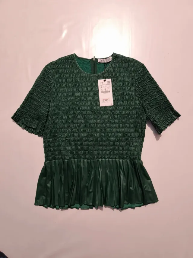 Camiseta Zara verde fruncida talla L