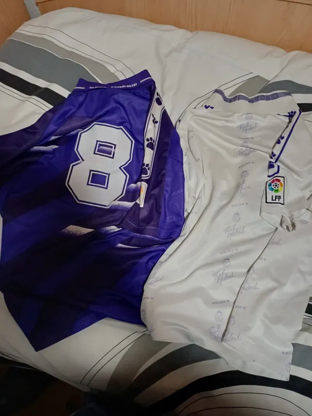 Detalles del productoDos camisetas originales del Real Madrid de la marca Kelme, de la temporada 1996-1998.