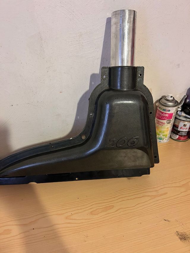 Campana de admisión fabricada en carbono para Peugeot 206. - Diseño deportivo en fibra de carbono. - Incluye tubo de admisión metálico.