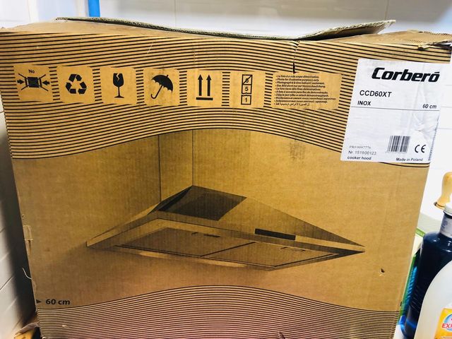 Detalles del productoCampana extractora de cocina Corberó, modelo CCD60XT, de 60 cm de ancho. Nueva, sin usar y en su embalaje original.