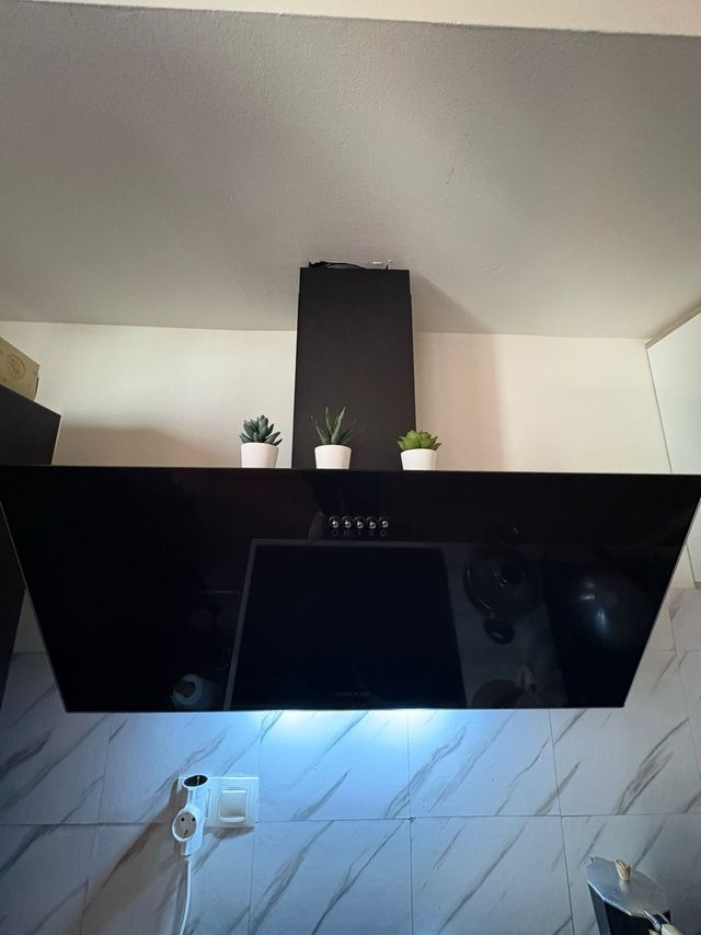 Detalles del productoCecotec Campana Decorativa de 90cm Bolero Flux DM 906500 Glass Black A. Motor 165W, Bajo Consumo, Frontal Vidrio Negro, Succión 650m3/h, Control Mecánico, 3 Niveles Potencia, Luz y Filtro de Carbono