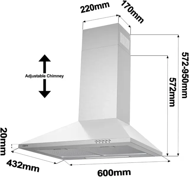 Detalles del productoCampana extractora de la marca CIARRA, con un ancho de 60cm. 370m³/h 40W Clase A++- 3 Velocidades de Extracción - Evacuación al Exterior y Recirculación Interna por Filtro de Carbón CBCF002X2 (no incluido)- Acero Inoxidable