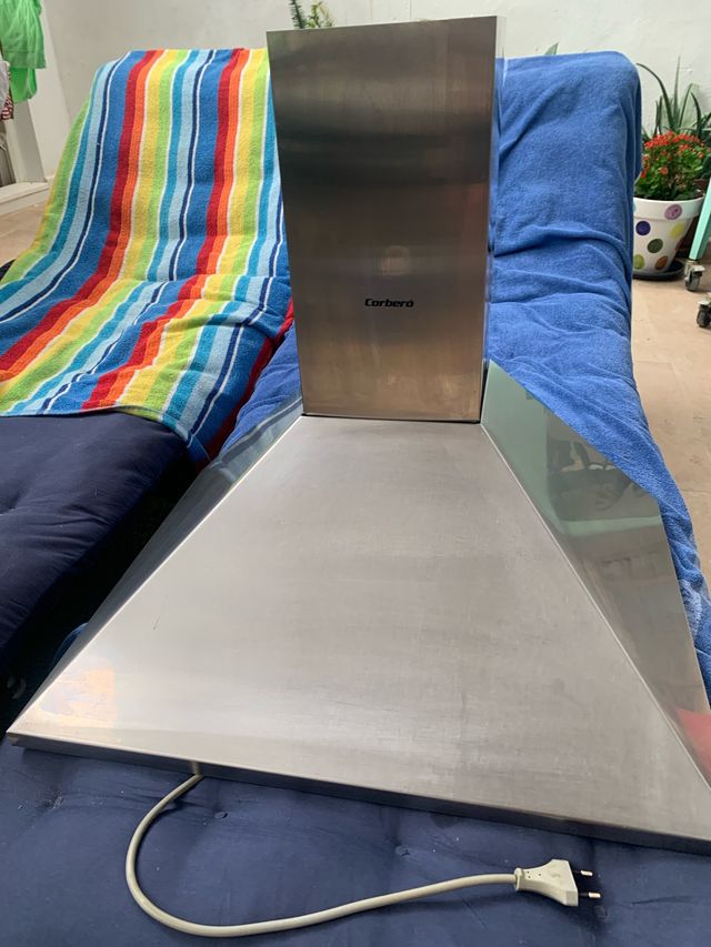 Detalles del productoCampana extractora de acero inoxidable con un diseño moderno y elegante. Ideal para cocinas.