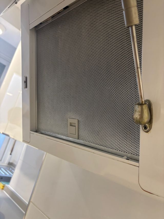 Campana extractora de cocina con filtro metálico. - Diseño moderno y funcional. - Filtro de fácil acceso para limpieza.