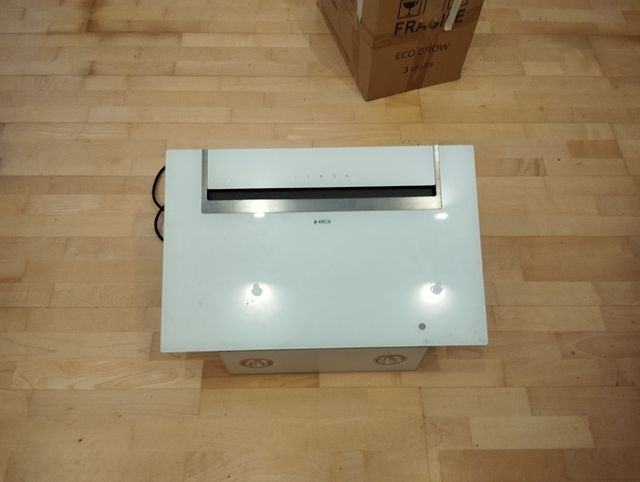 Detalles del productoCampana extractora decorativa vidrio blanco cristal, nueva sin usar en absoluto medida 60cm marca Mepansa. Puede susarse sin salida de humo solo con filtro Medidas del producto