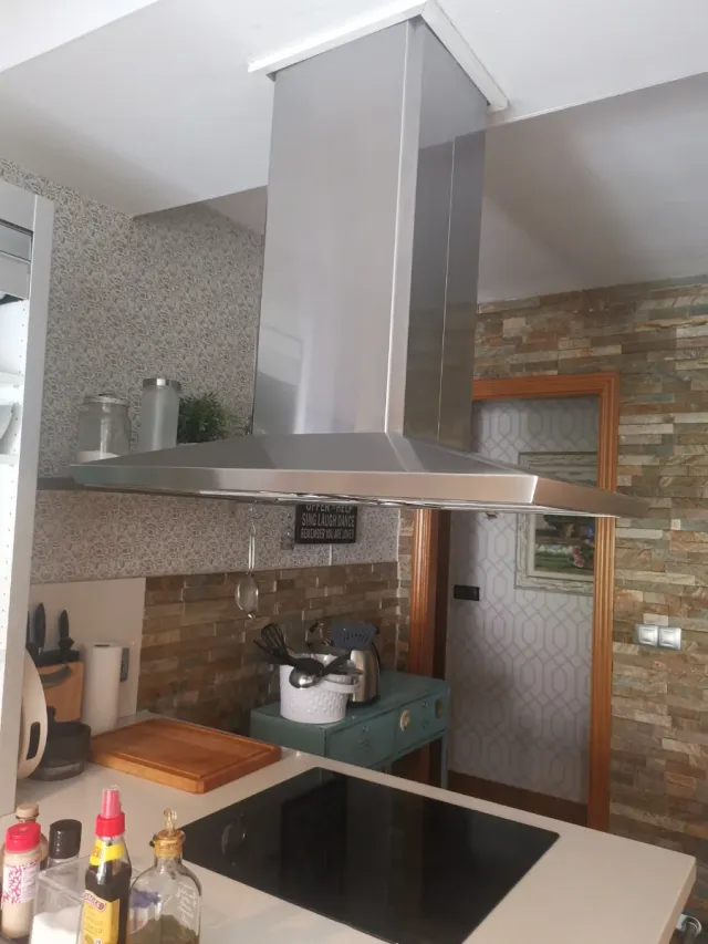 Detalles del productoCampana extractora decorativa con acabado en acero inoxidable.