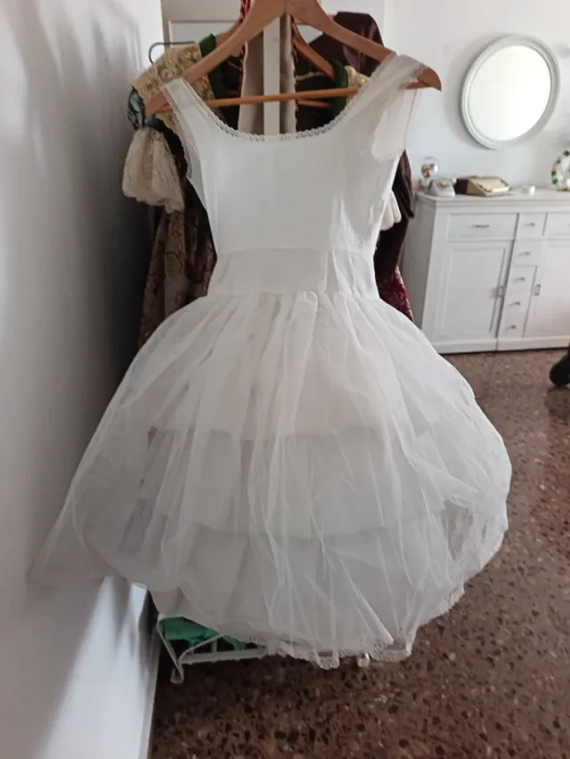 Can can blanco para traje de fallera infantil. Aporta volumen y movimiento a la falda. - Tejido de tul. - Varios volantes. - Cintura elástica.