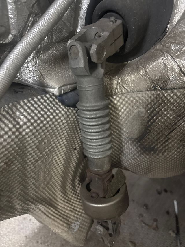 Componente de dirección para BMW E46. Se observa un fuelle protector y juntas universales. - Caña de dirección. - Fuelle protector. - Juntas universales.