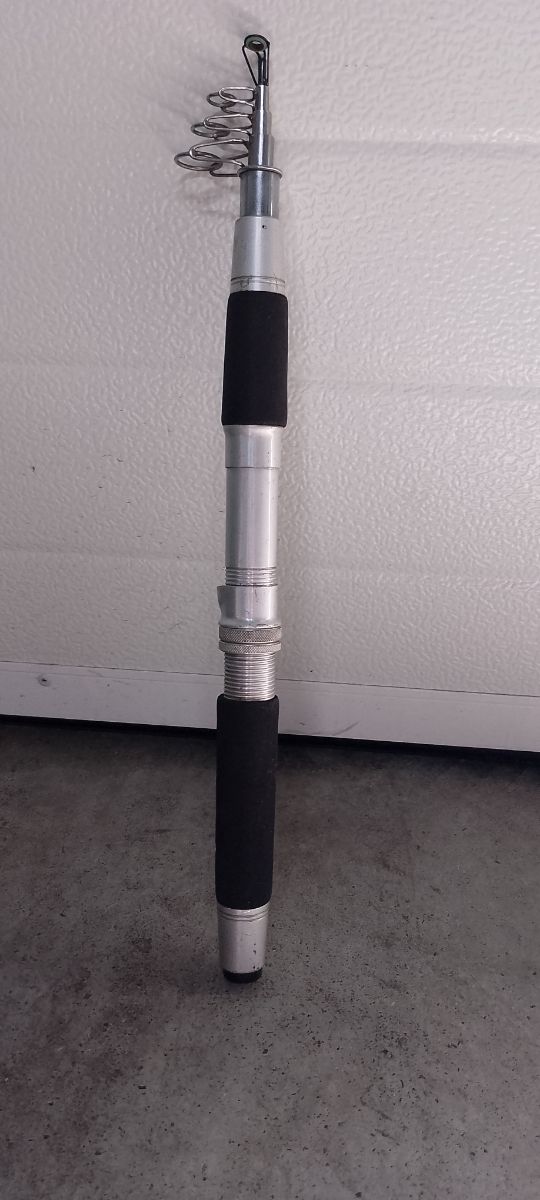Detalles del productoCaña de pesca telescópica de aluminio, ideal para llevar a cualquier parte. Su diseño plegable la hace muy práctica.