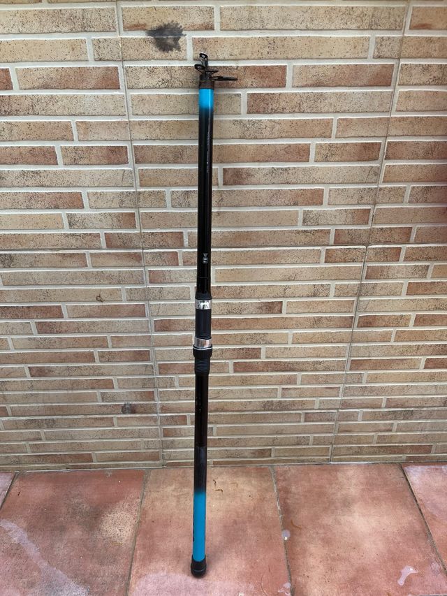 Caña de pesca Caperlan 4x4 en color negro y azul. - Diseño telescópico. - Empuñadura ergonómica. - Anillas de alta resistencia.