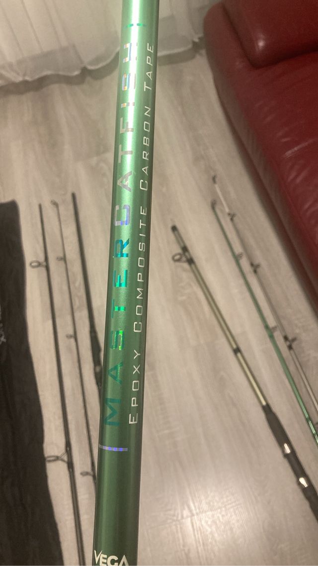 Caña de pesca Master Catfish con construcción en epoxy y carbono. - Diseño en color verde. - Cinta de carbono. - Marca VEGA.