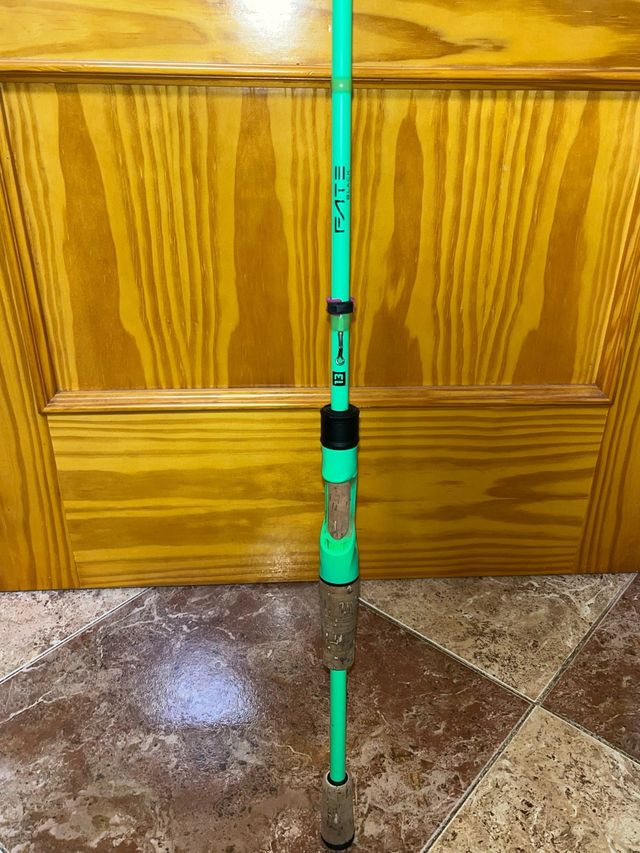 Se vende caña de pescar de la marca 13 Fishing, modelo Fate. Ideal para la pesca. - Color verde neón. - Empuñadura de corcho.