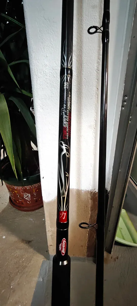 Caña de pescar Berkley BIG CAT de alta potencia. - Diseño con detalles plateados y rojos. - Mango negro. - Anillas para sedal. SIN ESTRENAR!!!