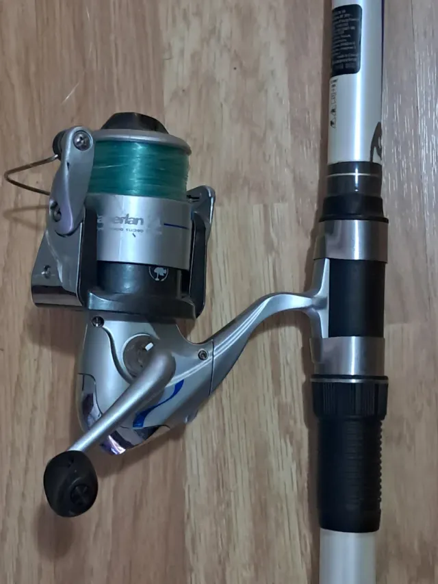 Caña de pescar de la marca Caperlan. Mide 3,5 metros de larga.