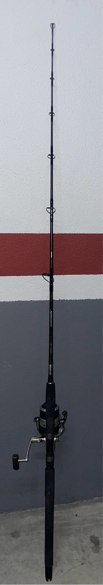 - Caña de pescar de color negro.