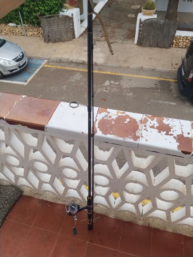 Conjunto de caña de pescar y carrete. - Caña de pescar de dos tramos. - Carrete de pesca marca Daiwa. - Incluye funda para la caña.