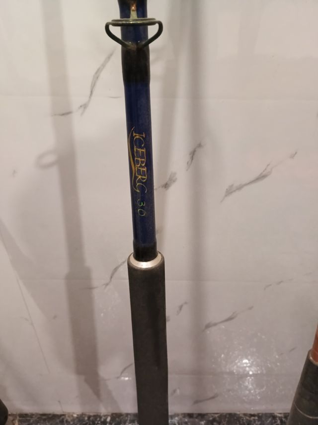 Caña de pescar marca ICEBERG. de 3 cañas - Modelo: 3.0 - Color: Azul con detalles dorados. Otra caña de marca seamaster 1404 i otra para barca las 3