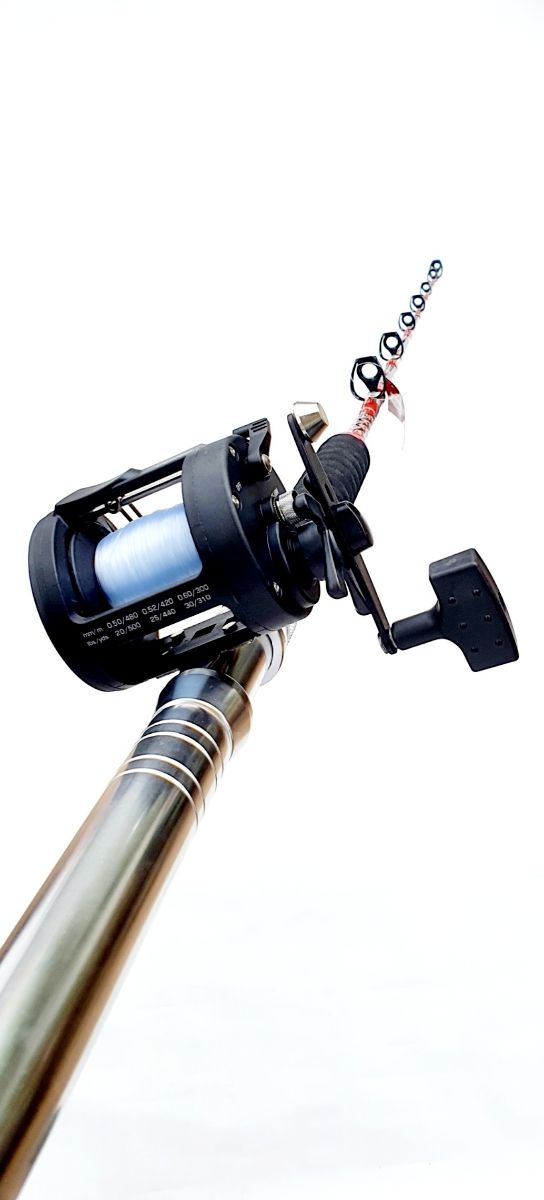 Detalles del productoCombo Grauvell Kona Yuba diseñado para la pesca del currican costero y de altura compuesto por Caña de 1.70, Fabricada en Carbono de alto módulo, Acción 50 Libras, Mango de Inox con Cruzeta y Empuñadura Antideslizante + Carrete 40 Libras con guiahilos Ultra-Dimensionado, Freno de 18 Kilos + Hilo Puesto del 0.60