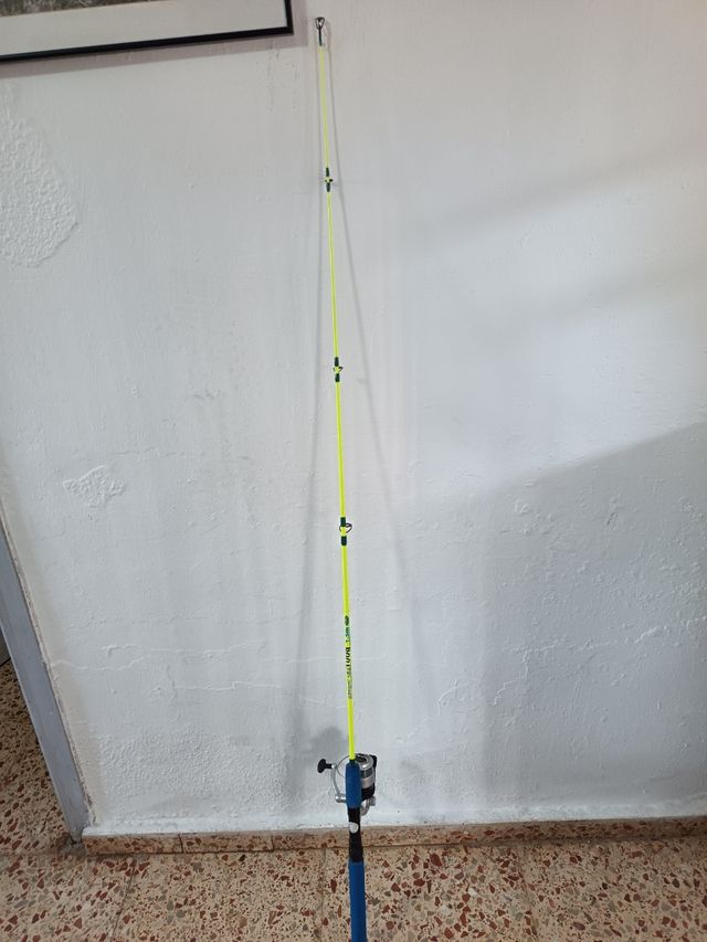 Caña de pescar de color amarillo brillante, ideal para iniciarse en la pesca. - Caña de 1.5 metros. - Incluye carrete.