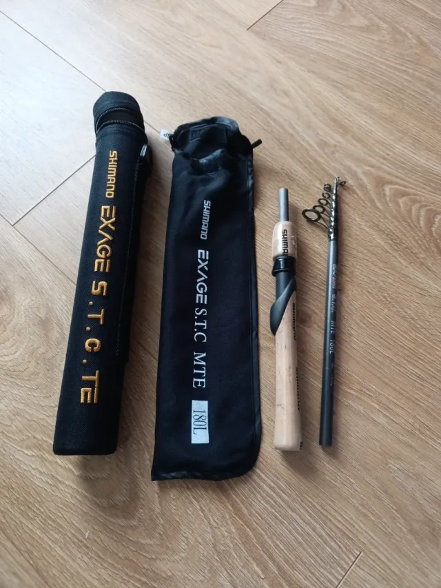 Caña telescópica Shimano Exage S.T.C. MTE 180L. - Incluye funda de transporte. - Diseño compacto y ligero.