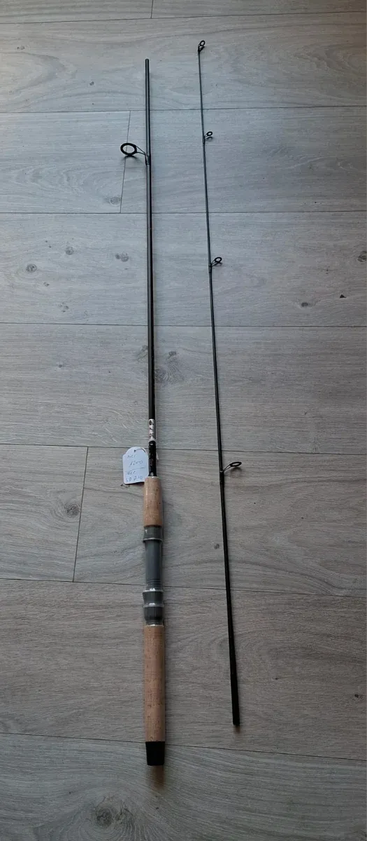 Caña de pescar de dos piezas con mango de corcho, modelo