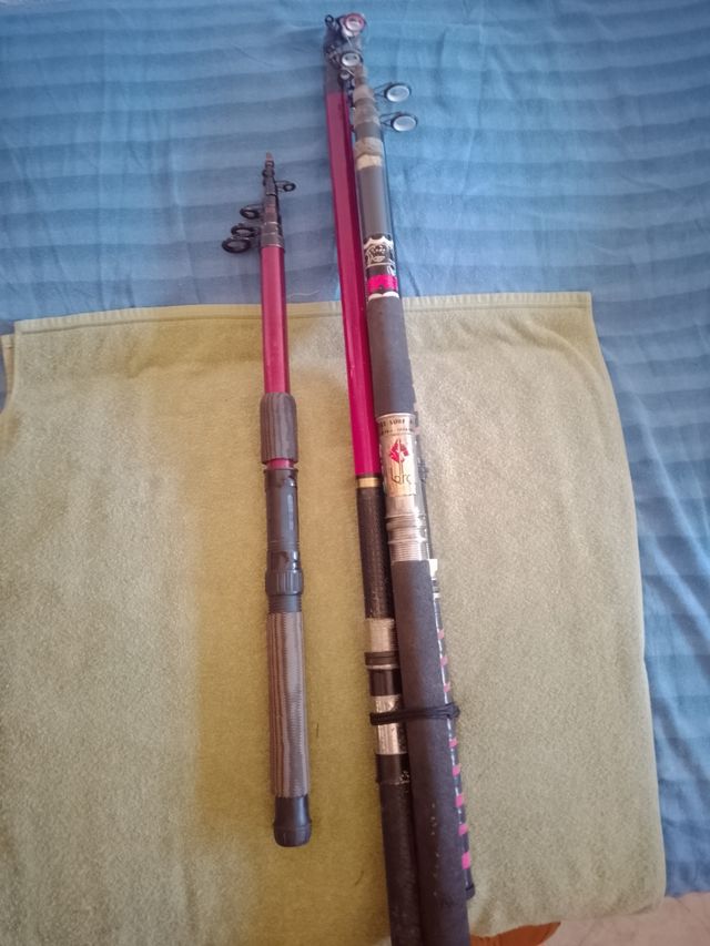Detalles del productoSe venden dos cañas de pescar telescópicas, una de color rojo y otra negra.