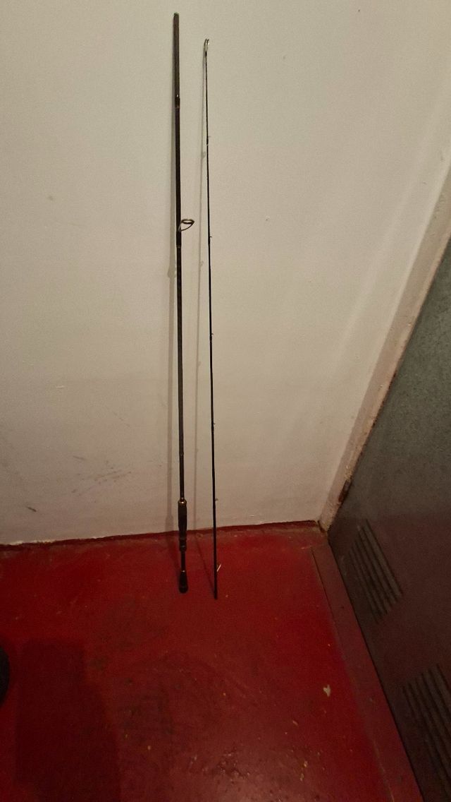 Caña de pescar en buen estado, lista para usar. - Material resistente. - Diseño ergonómico.