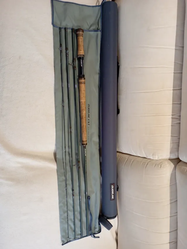 Detalles del productoCaña de pesca a mosca Guideline Lxi de 12'9'' pies para línea #8/9, 4 tramos. Incluye funda protectora y tubo rígido originales.