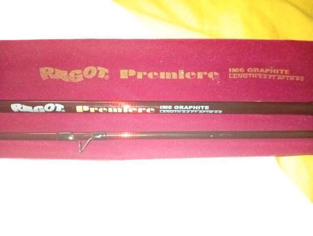 Detalles del productoVendo caña de pescar Ragot Premiere en perfecto estado. Es una caña de grafito de 9 pies ,línea 4-5. Se incluye funda de tela y estuche duro.