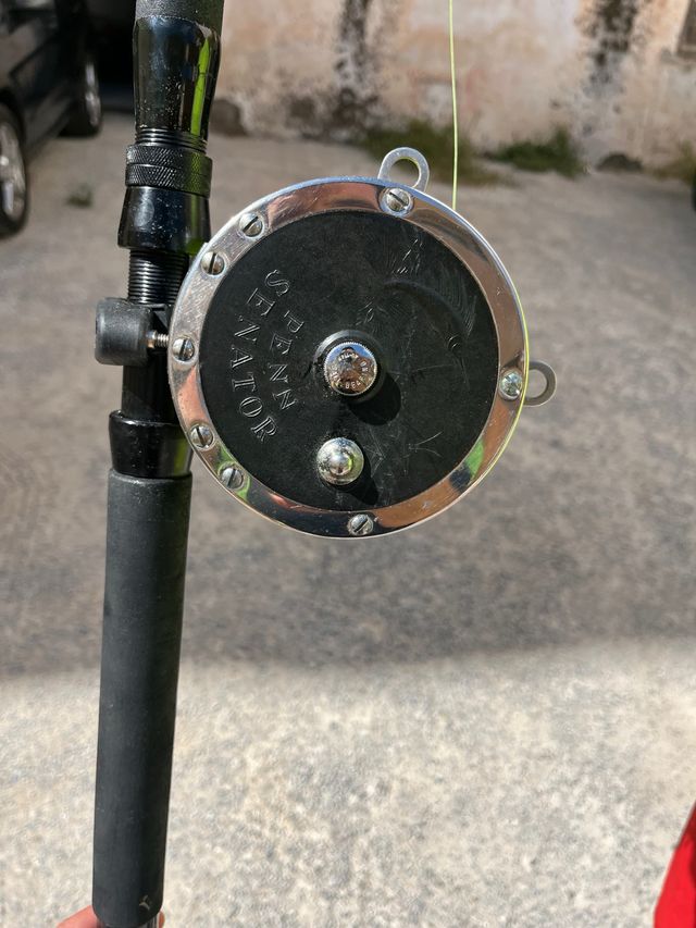 Se vende caña de pesca SHIMANO junto con un carrete PENN Senator 9/0. - Carrete PENN Senator 9/0. - Caña de pesca SHIMANO.